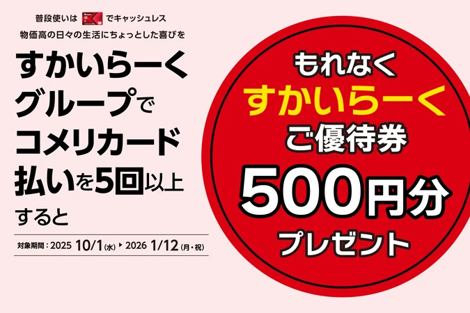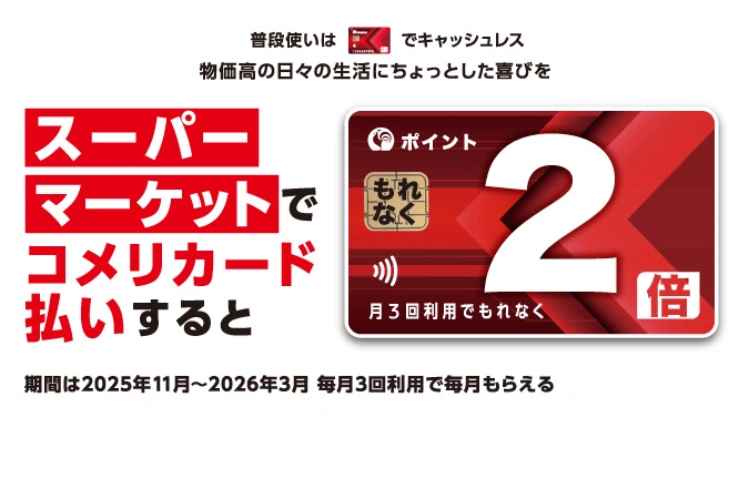 コメリでの利用額により翌年のポイント倍率が変わります。ご契約月を1か月目として12か月のお買上金額(税込)で算定します。