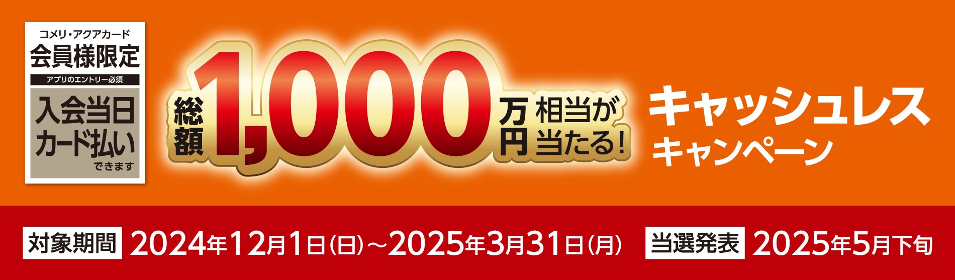 コメリでの利用額により翌年のポイント倍率が変わります。ご契約月を1か月目として12か月のお買上金額(税込)で算定します。