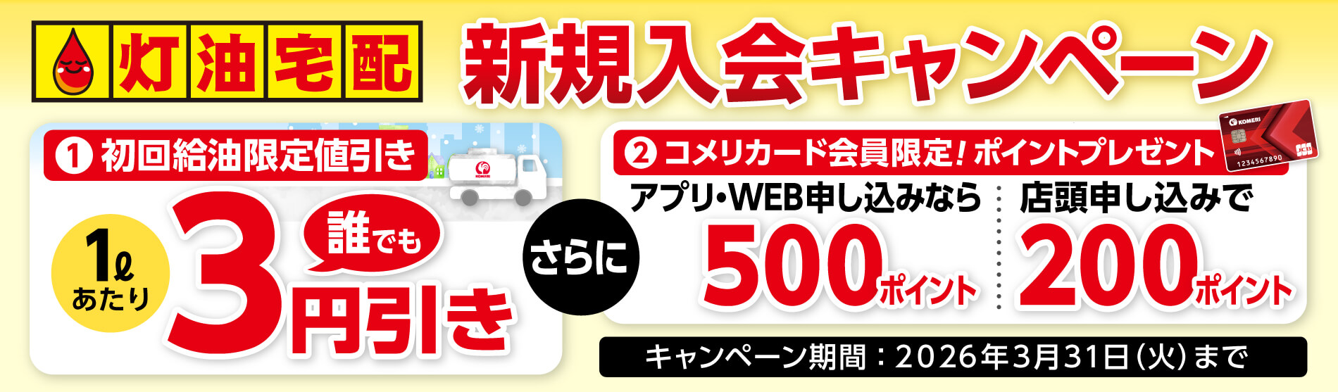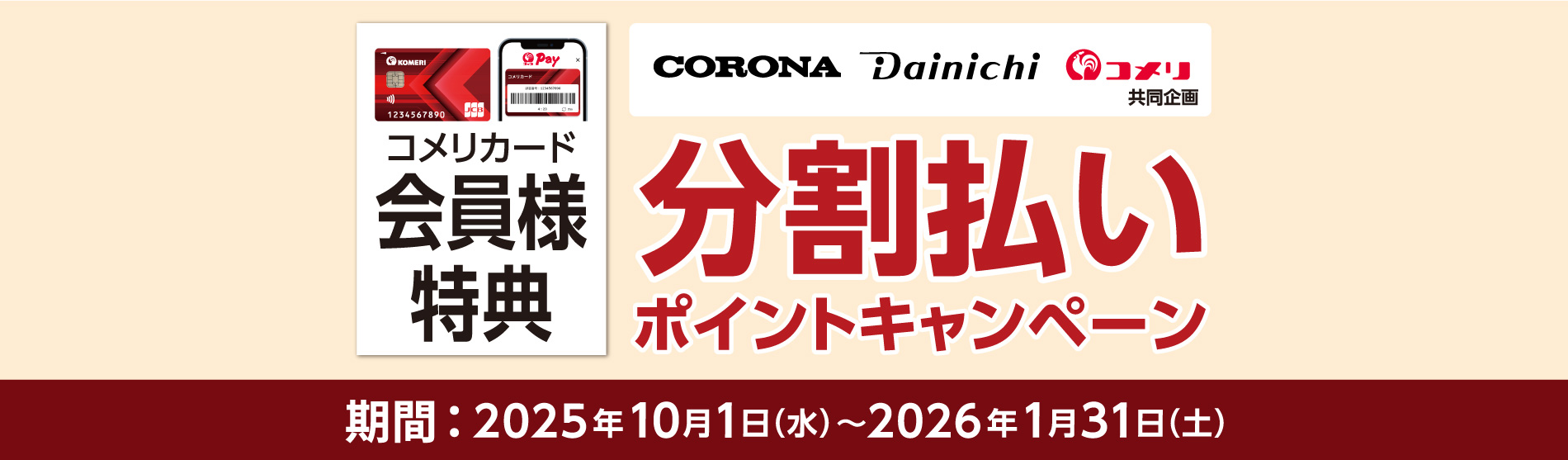 期間中対象商品をコメリ店舗でコメリカード分割払いにてご購入いただいたお客様にポイントプレゼント