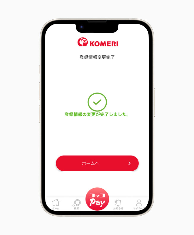 コッコPayを起動させてバーコードを表示することで、コメリ店舗でお買物ができます。