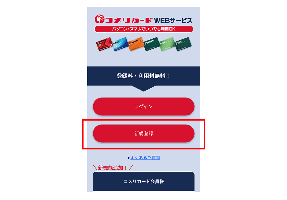 コメリカードWEBサービスにログイン後、「ご利用明細照会」をクリックし、WEB明細をご確認できます。